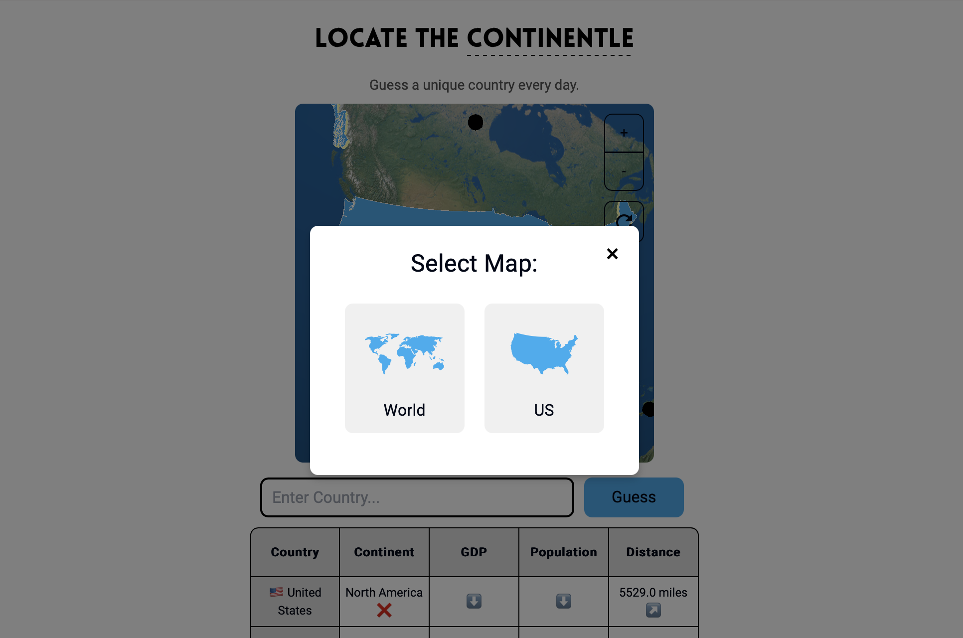 This was a super fun app to make. It’s a geography puzzle game where you guess a country or state (I call it the “continentle”) each day, within a limited number of tries. There is a practice mode as well, where you can play infinitely. After guessing, you can compare your guess to other players with a leaderboard, powered by MongoDB. I was mostly inspired from fantastic apps like Wordle and Travle